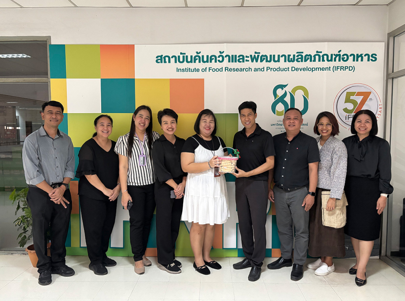 เมื่อวันที่ 24 ธันวาคม 2568 คณะผู้แทนจากกองวิเทศสัมพันธ์ มหาวิทยาลัยเกษตรศาสตร์ นำโดย นางสาวปรารถนา ถิรเกียรติคุณ หัวหน้างานความร่วมมือและเครือข่ายระหว่างประเทศ นางรัตมา ใช้ไหวพริบ หัวหน้างานและยุทธศาสตร์สากล พร้อมด้วยบุคลากรจากกองวิเทศฯ เข้ามอบของที่ระลึกเพื่อสวัสดีปีใหม่ 2569 แด่ ดร.นิพัฒน์ ลิ้มสงวน รองผู้อำนวยการ คณะผู้บริหาร และบุคลากรสถาบันค้นคว้าและพัฒนาผลิตภัณฑ์อาหาร ณ อาคารอมรภูมิรัตน มหาวิทยาลัยเกษตรศาสตร์ บางเขน