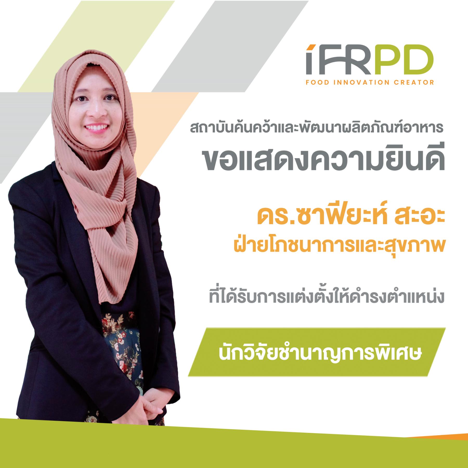 ขอแสดงความยินดี กับ ดร.ซาฟียะห์ สะอะ ที่ได้รับแต่งตั้งให้ดำรงตำแหน่งนักวิจัยชำนาญการพิเศษ
