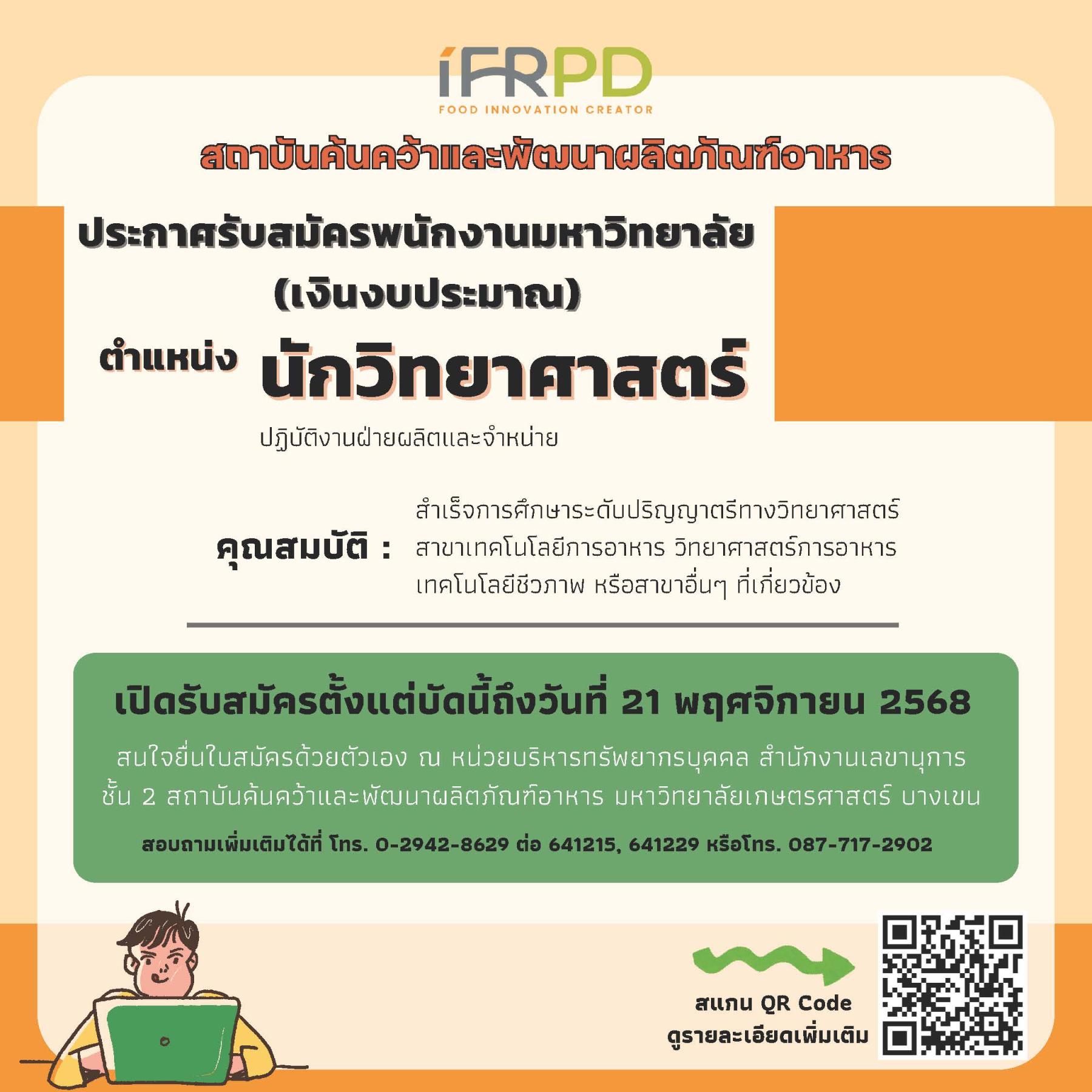 ประกาศ รับสมัครคัดเลือกเพื่อจ้างและแต่งตั้งบุคคลเป็นพนักงานมหาวิทยาลัยเกษตรศาสตร์ ตำแหน่ง : นักวิทยาศาสตร์
