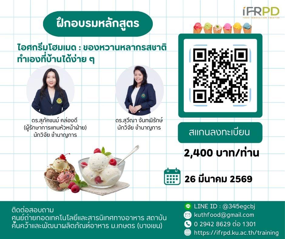 ประชาสัมพันธ์ฝึกอบรมหลักสูตรไอศกรีมโฮมเมด : ของหวานหลากรสชาติ ทำเองที่บ้านได้ง่าย ๆ