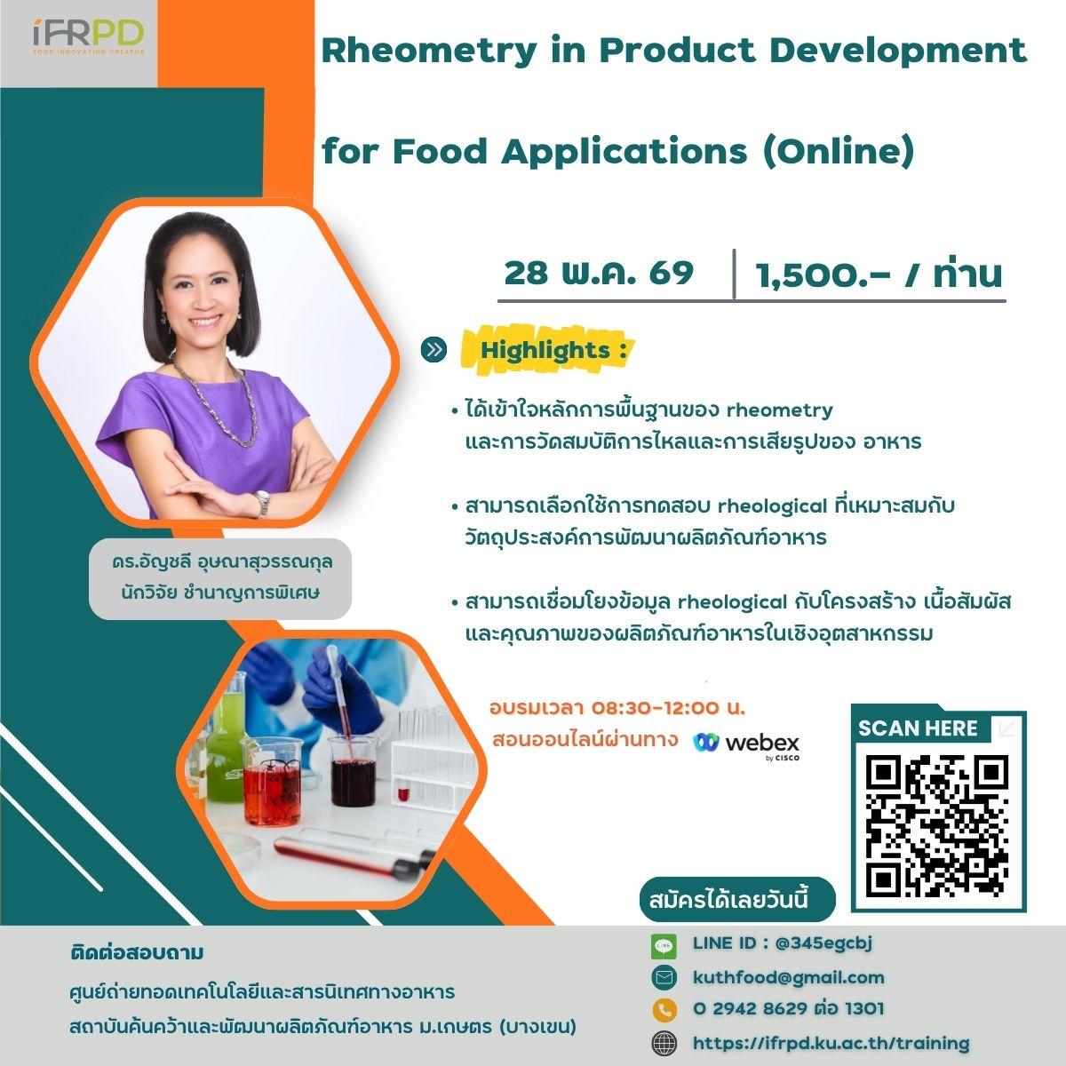 ประชาสัมพันธ์ฝึกอบรมหลักสูตร หลักสูตร Rheometry in Product Development for Food Applications