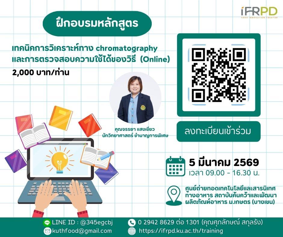 ประชาสัมพันธ์หลักสูตรฝึกอบรม (Online) เทคนิคการวิเคราะห์ทาง chromatography และการตรวจสอบความใช้ได้ของวิธี อบรมวันที่ 5 มี.ค. 69 ค่าลงทะเบียน 2,000 บาท/ท่าน