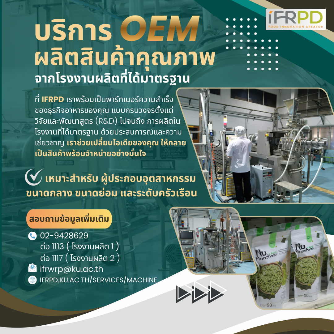 IFRPD พร้อมสนับสนุนคุณเพื่อพัฒนาผลิตภัณฑ์อาหารครบทุกขั้นตอน การผลิตที่มีคุณภาพ ด้วยบริการของเรา การผลิต (OEM)
