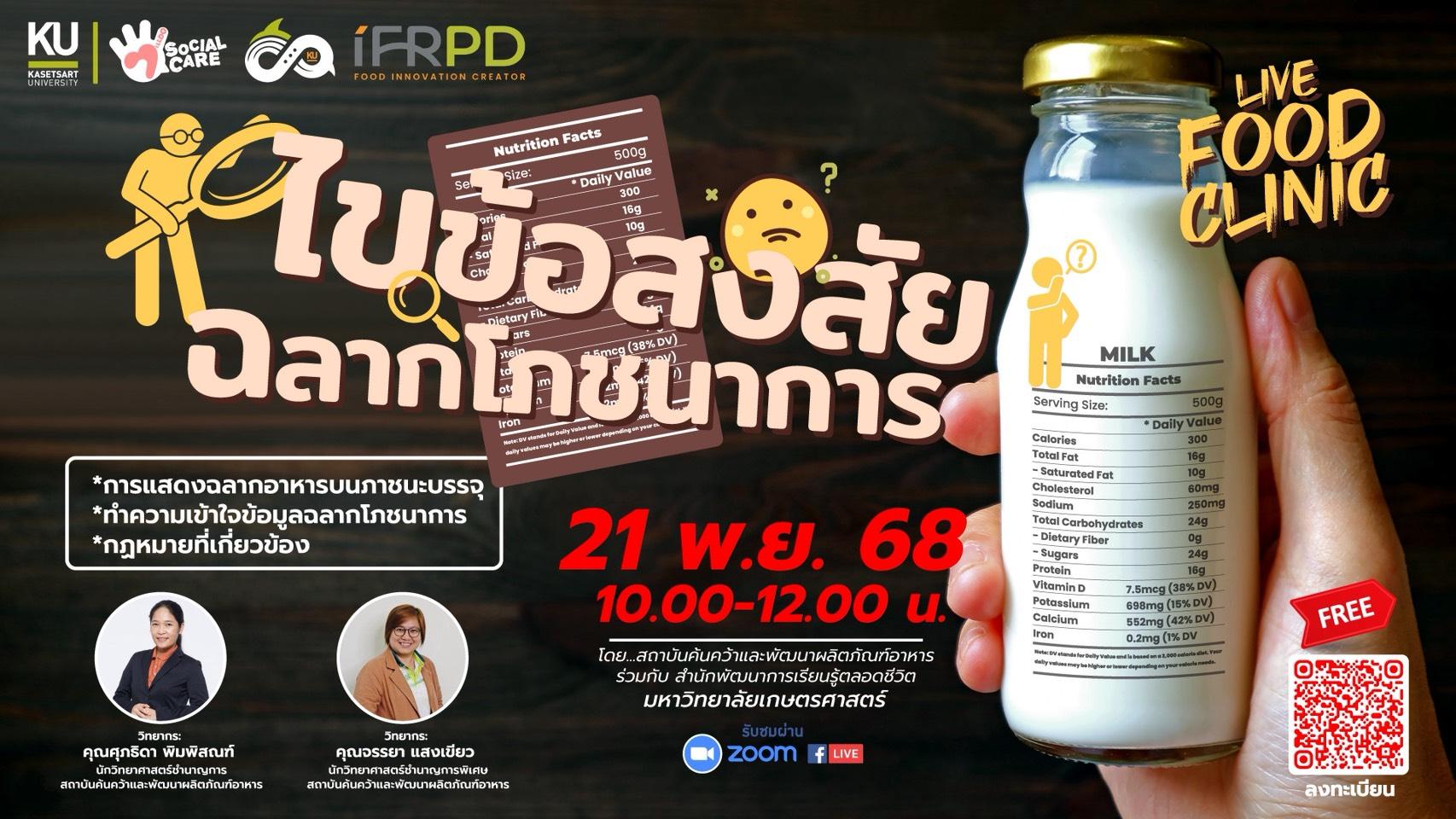 ขอเชิญรับชม LIVE FOOD CLINIC ไขข้อสงสัยใน "ฉลากโภชนาการ" ผ่าน Zoom และ Facebook Live ฟรี!!