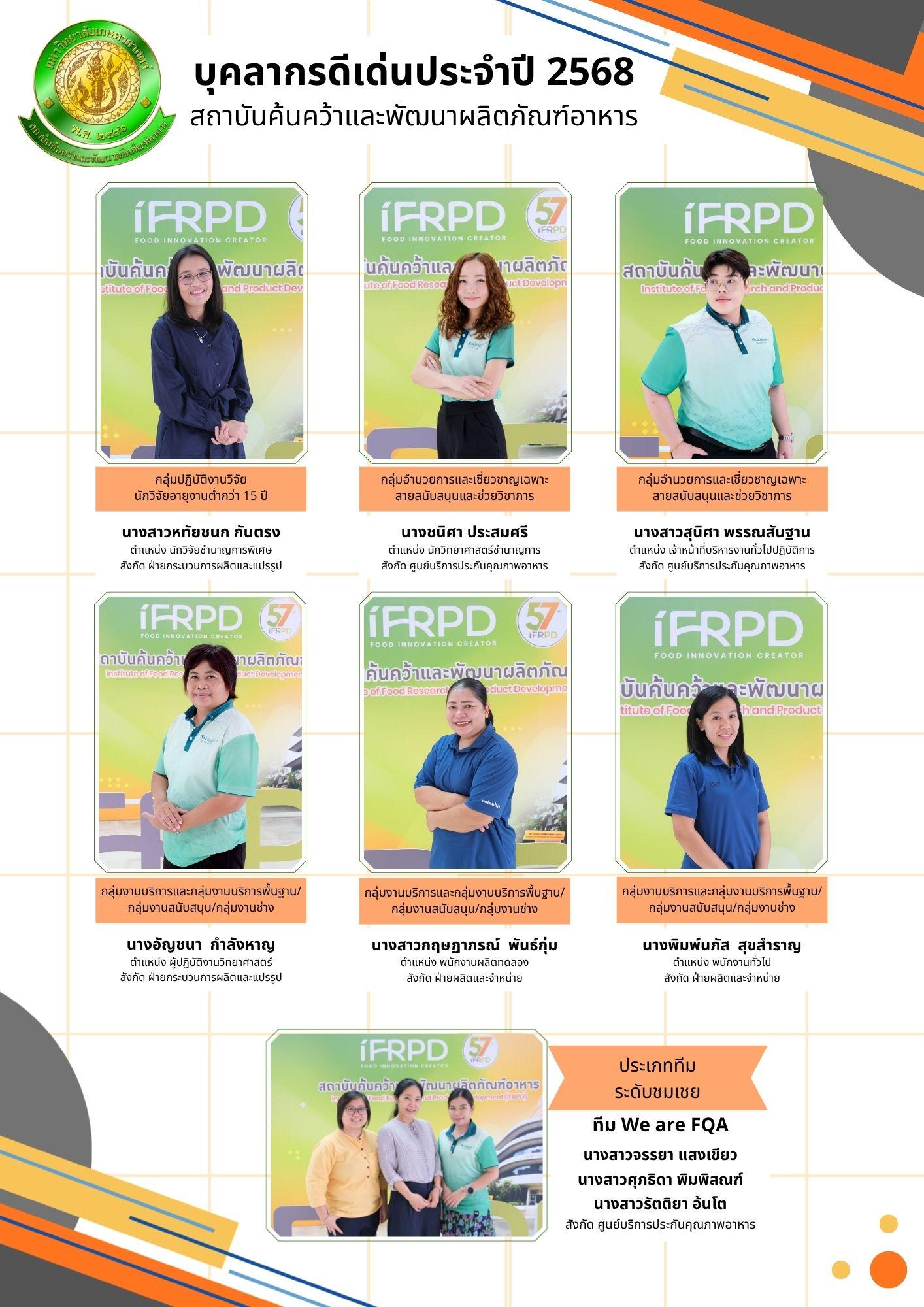 ขอแสดงความยินดีกับบุคลากรดีเด่นสถาบันค้นคว้าและพัฒนาผลิตภัณฑ์อาหาร ประจำปี 2568
