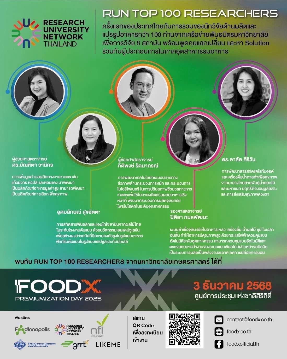 ลงทะเบียนพบนักวิจัยอาหารชั้นนำ ที่ https://foodx.co.th/top100/register-