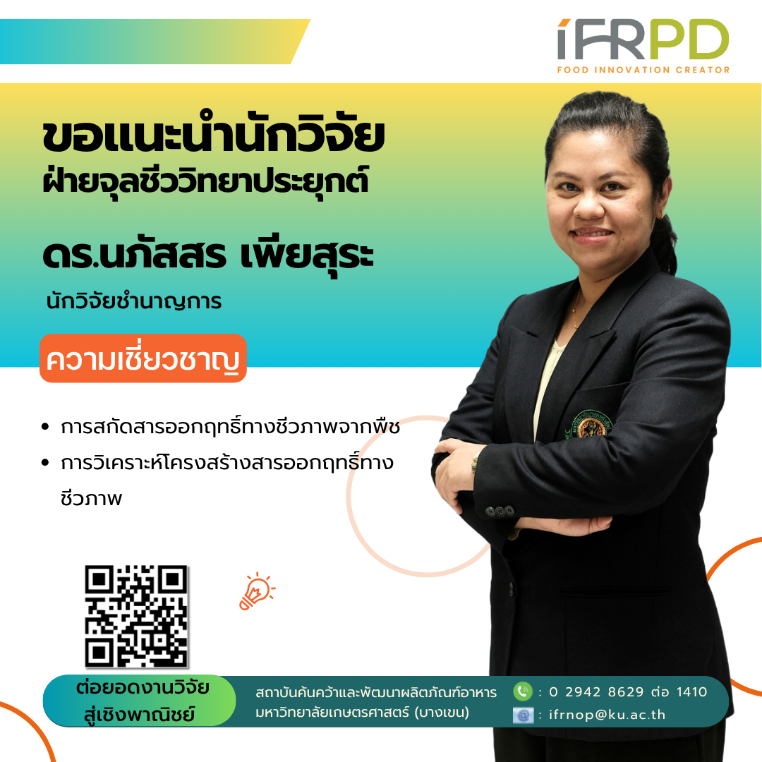 เราขอแนะนำ ดร.นภัสสร เพียสุระ นักวิจัยชำนาญการ ฝ่ายจุลชีววิทยาประยุกต์