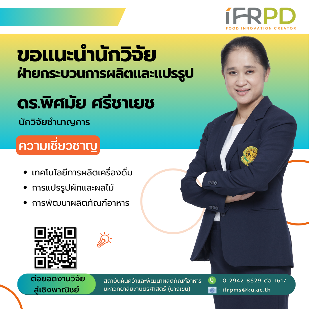 เราขอแนะนำ ดร.พิศมัย ศรีชาเยช นักวิจัยชำนาญการ ฝ่ายกระบวนการผลิตและแปรรูป