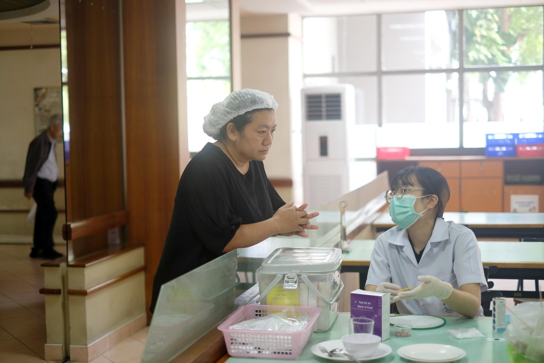 วันอังคารที่ 18 พฤศจิกายน 2568 เจ้าหน้าที่ฝ่ายสิ่งแวดล้อมและสุขาภิบาล สำนักงานเขตจตุจักร ร่วมกับเจ้าหน้าที่หน่วยตรวจสอบเคลื่อนที่ เพื่อความปลอดภัยด้านอาหาร (mobile unit) กลุ่มเขตกรุงเทพเหนือ ดำเนินการตรวจเฝ้าระวังคุณภาพอาหาร โดยสุ่มเก็บตัวอย่างอาหารตรวจด้านเคมี และด้านชีวภาพ โดยใช้ชุดทดสอบเบื้องต้น โดยมี ดร.นิพัฒน์ ลิ้มสงวน รองผู้อำนวยการ, คุณภครมล ยิ้มแย้ม หัวหน้าฝ่ายอาหารและจัดเลี้ยง และบุคลากรฝ่ายฯ ให้การต้อนรับ ณ ห้องอาหารสหโภชน์ สถาบันค้นคว้าและพัฒนาผลิตภัณฑ์อาหาร มหาวิทยาลัยเกษตรศาสตร์ บางเขน