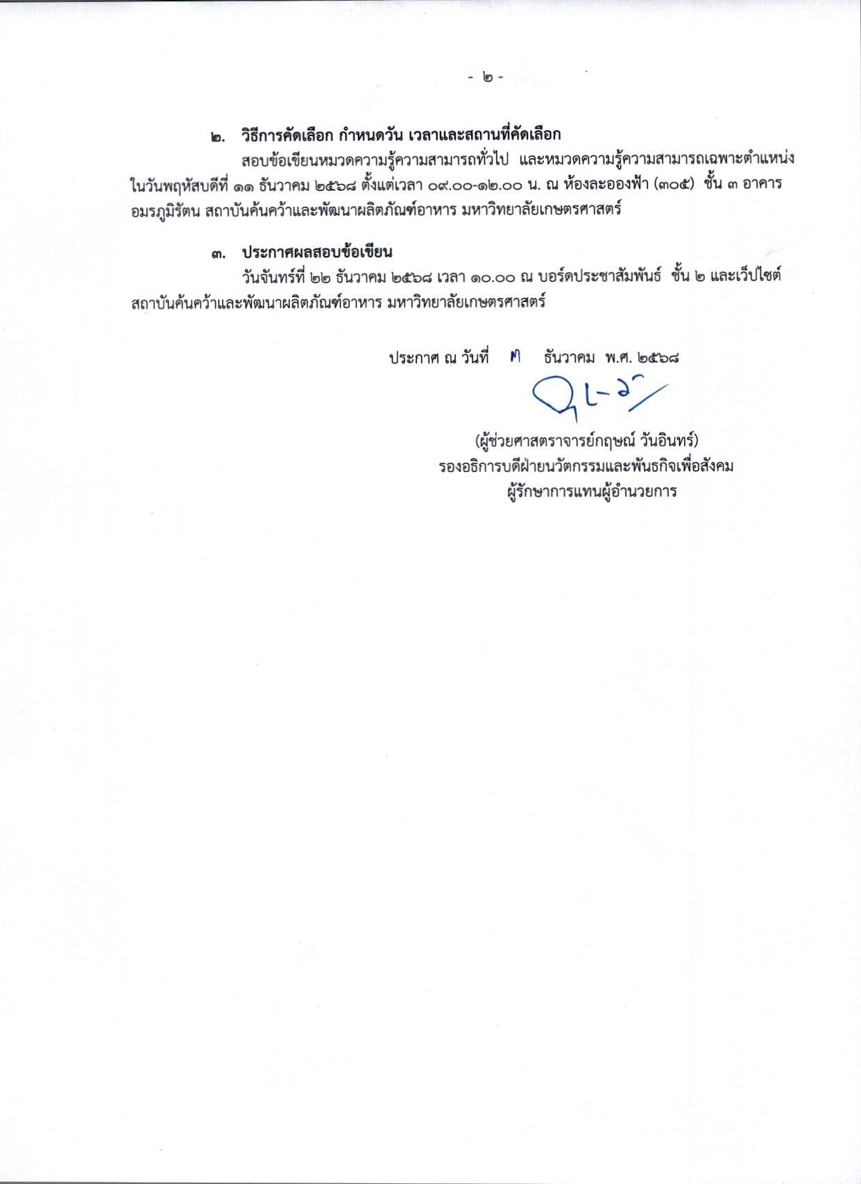 ประกาศ สถาบันค้นคว้าและพัฒนาผลิตภัณฑ์อาหาร