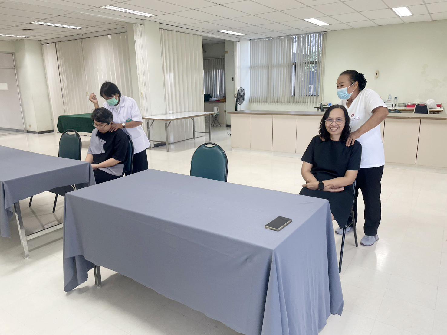 เมื่อวันที่ 8 ธันวาคม 2568 สถาบันค้นคว้าและพัฒนาผลิตภัณฑ์อาหาร จัดกิจกรรม “นวดกดจุดปลดล็อคอาการออฟฟิศซินโดรม” เพื่อส่งเสริมสุขภาพและความเป็นอยู่ที่ดีของบุคลากร ลดอาการปวดเมื่อยจากการทำงานเป็นเวลานาน ณ อาคารอมรภูมิรัตน มหาวิทยาลัยเกษตรศาสตร์ บางเขน