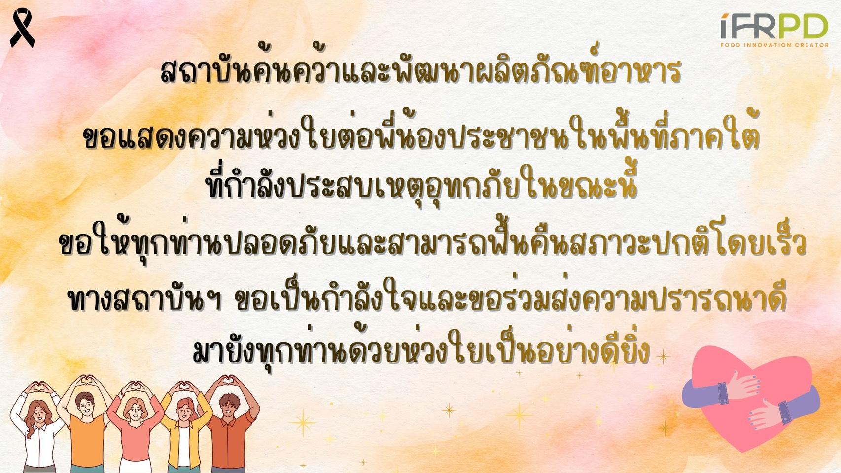 IFRPD ขอส่งกำลังใจไปยังพี่น้องภาคใต้ทุกท่านในช่วงสถานการณ์อุทกภัย