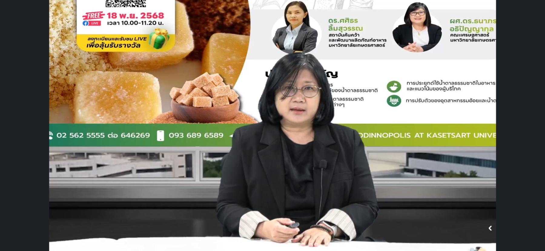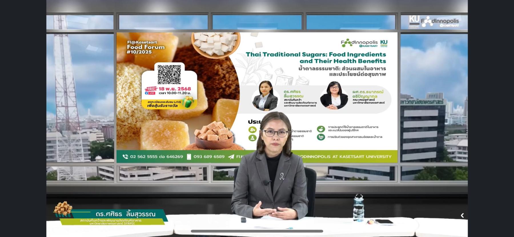 ภาพกิจกรรม FI@Kasetsart Food Forum #10/2025 ในหัวข้อ "น้ำตาลธรรมชาติ: ส่วนผสมในอาหารและประโยชน์ต่อสุขภาพ (Thai Traditional Sugars: Food Ingredients and Their Health Benefits)”