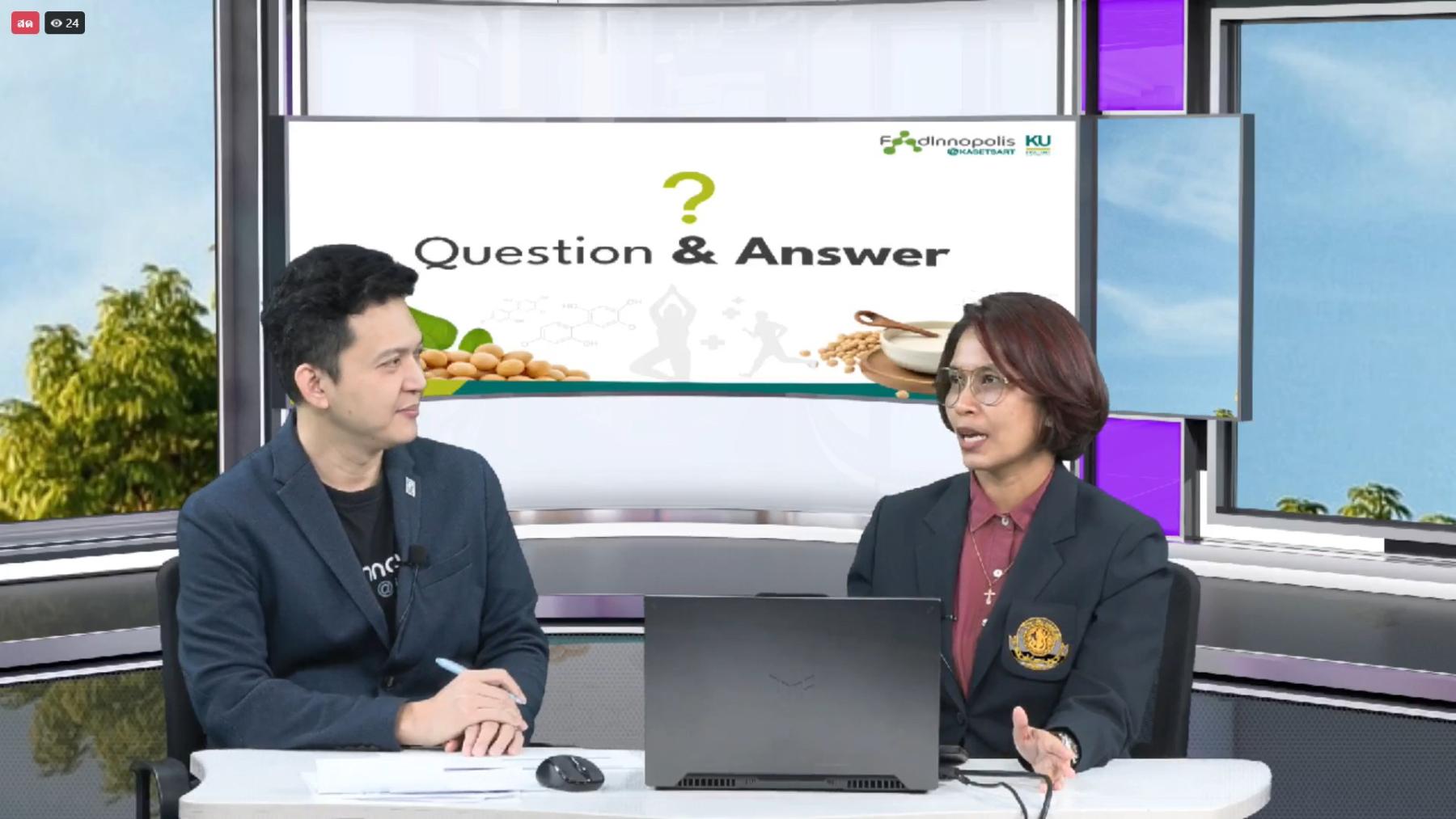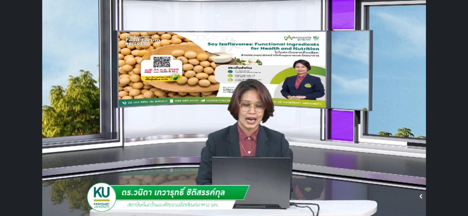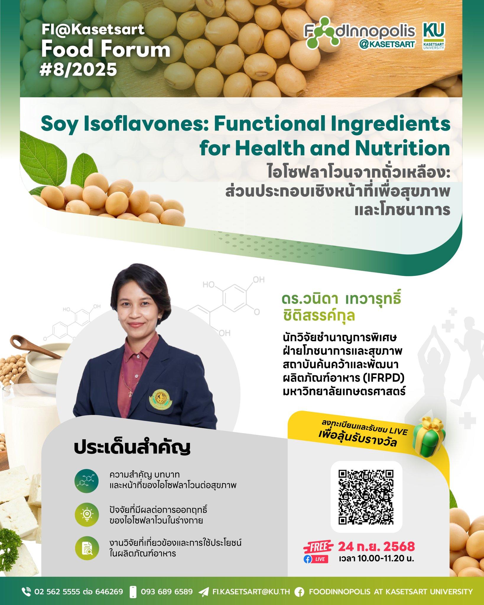 ภาพกิจกรรม FI@Kasetsart Food Forum #8/2025 ในหัวข้อ "ไอโซฟลาโวนจากถั่วเหลือง: ส่วนประกอบเชิงหน้าที่เพื่อสุขภาพและโภชนาการ (Soy Isoflavones: Functional Ingredients for Health and Nutrition)”