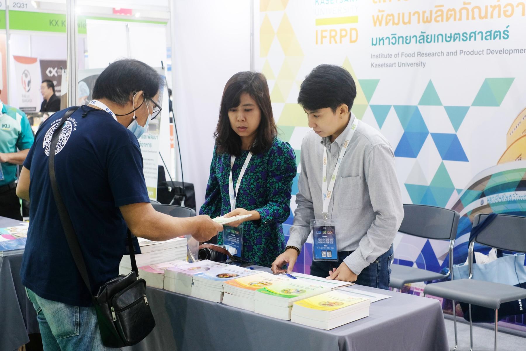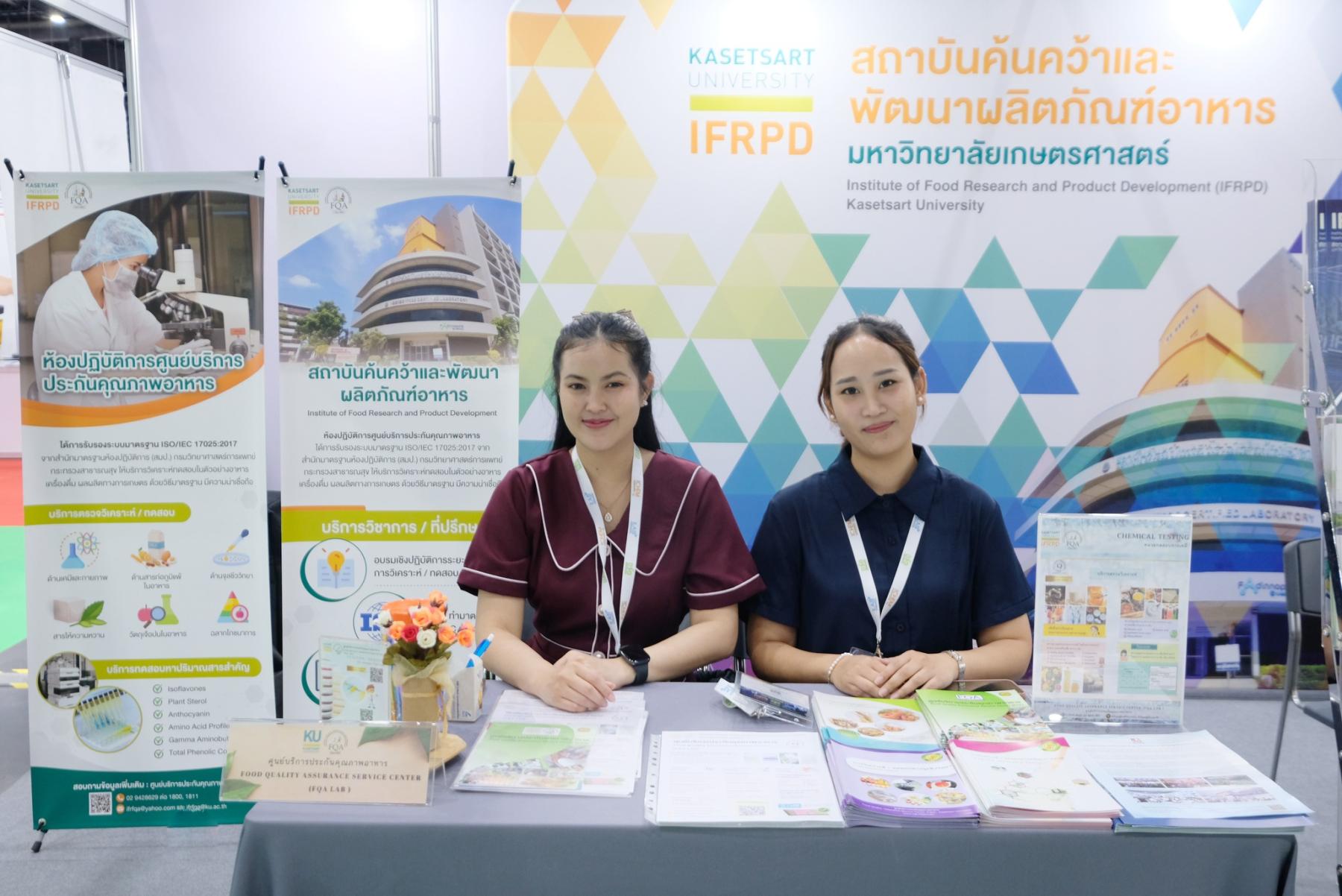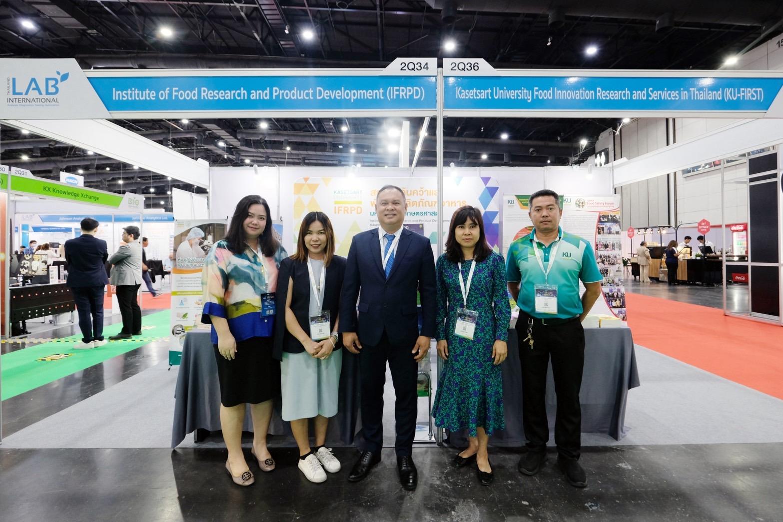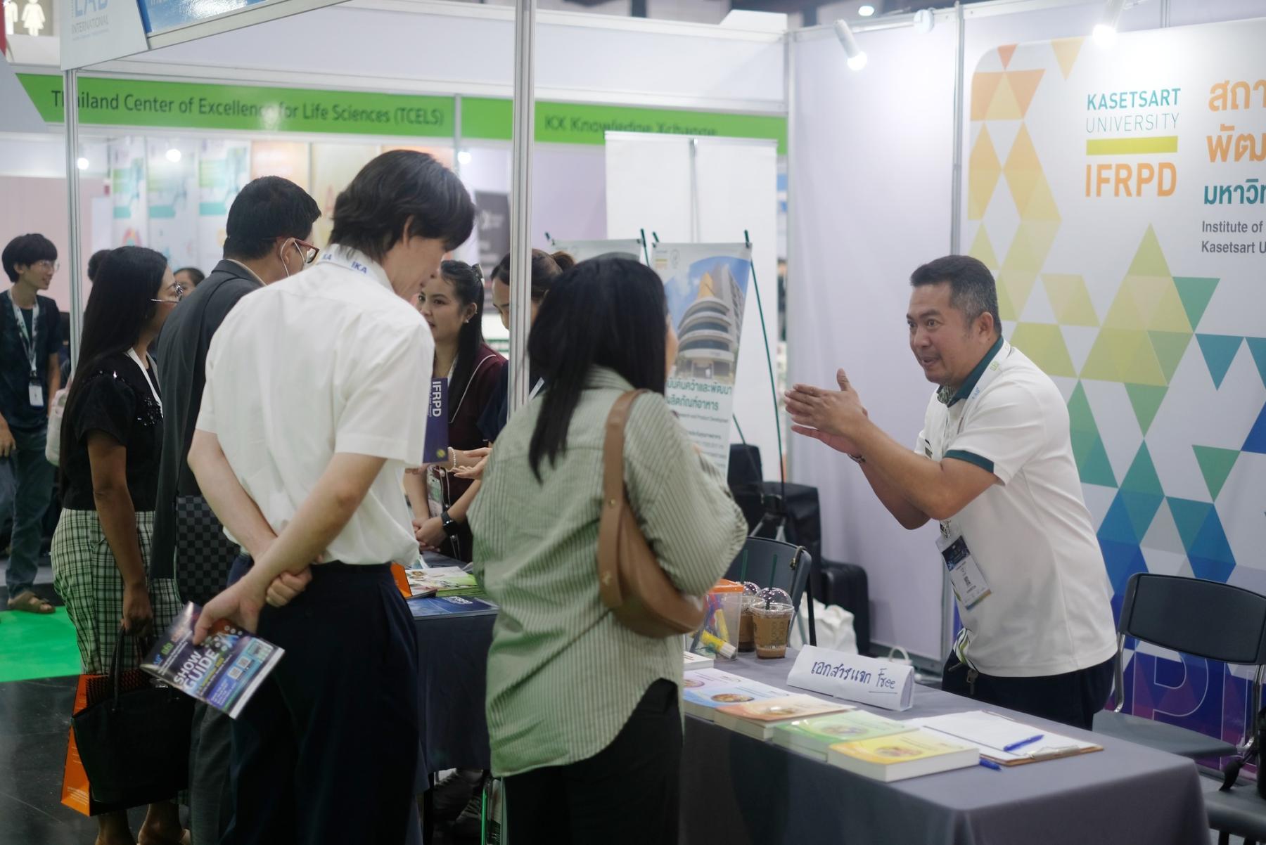 ภาพบูธกิจกรรมของสถาบันค้นคว้าและพัฒนาผลิตภัณฑ์อาหาร (IFRPD) และ ศูนย์นวัตกรรมวิทยาการอาหาร มหาวิทยาลัยเกษตรศาสตร์ (KU-FIRST) ที่ บูธหมายเลข 2Q34 และ 2Q36 ภายในงาน Thailand LAB INTERNATIONAL 2025 ณ ฮอลล์ EH102–104 ศูนย์นิทรรศการและการประชุมไบเทค (BITEC) ระหว่างวันที่ 3-5 กันยายน 2568