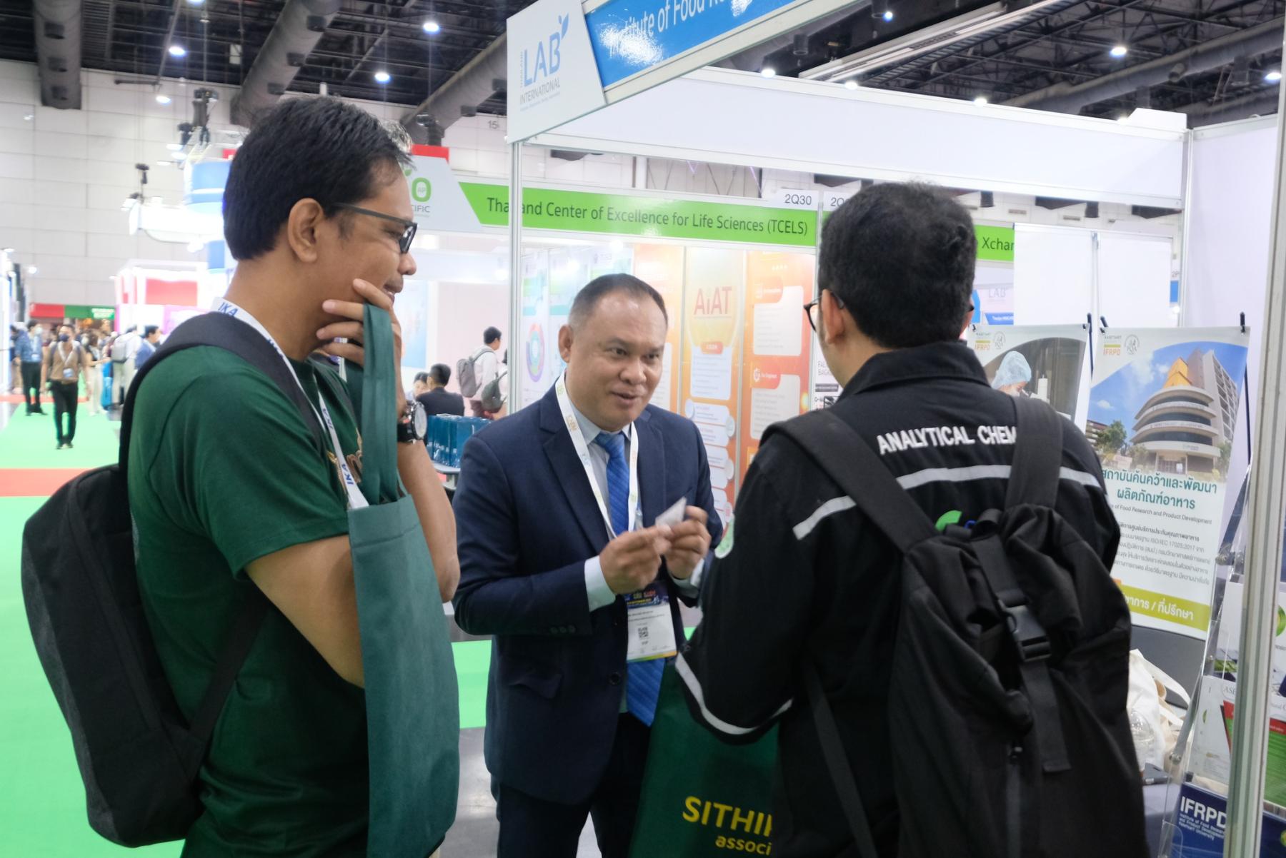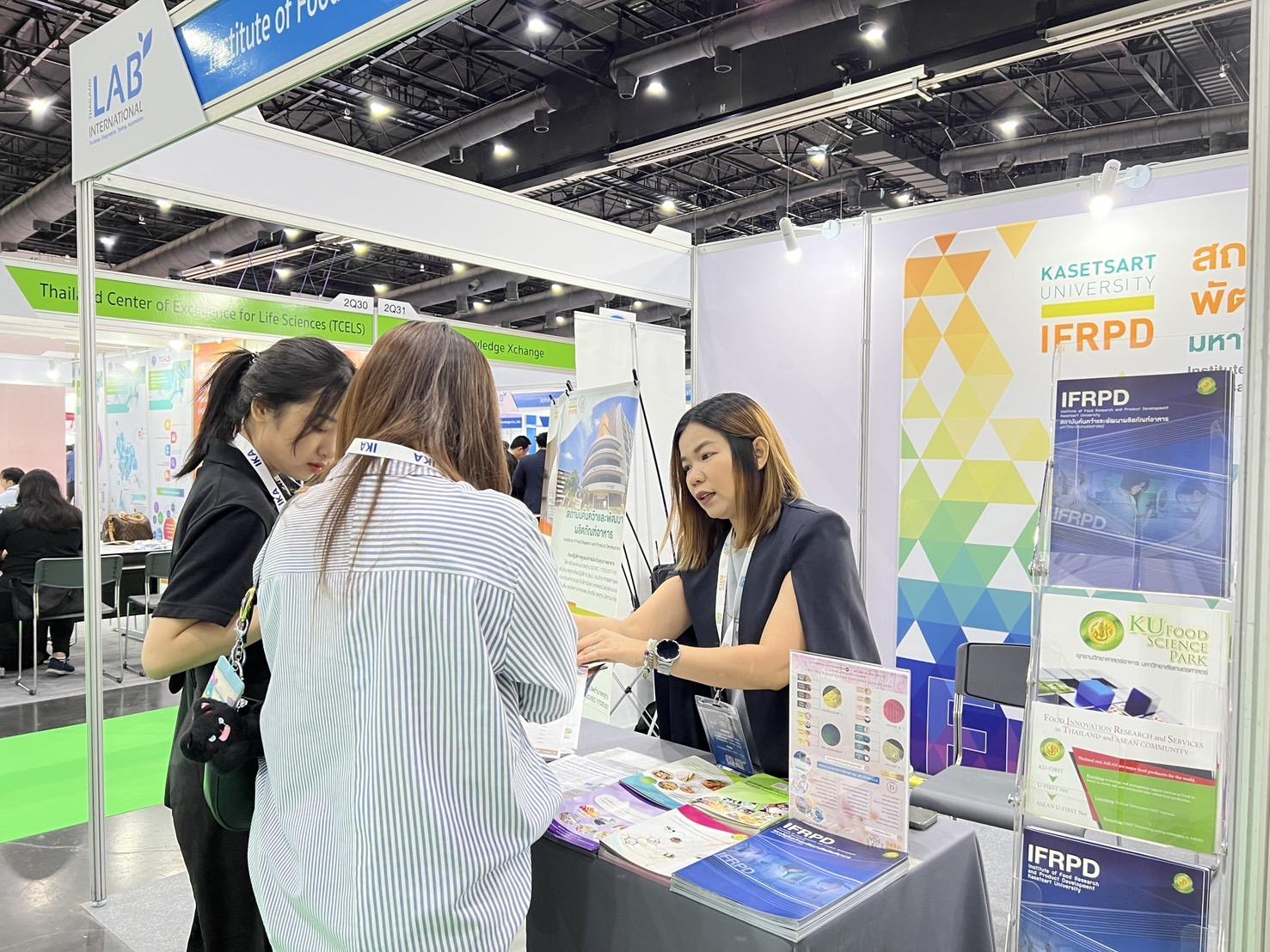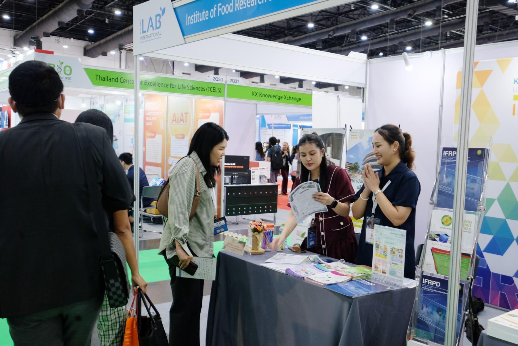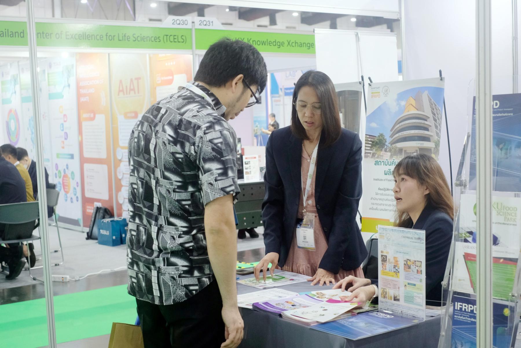 ภาพบูธกิจกรรมของสถาบันค้นคว้าและพัฒนาผลิตภัณฑ์อาหาร (IFRPD) และ ศูนย์นวัตกรรมวิทยาการอาหาร มหาวิทยาลัยเกษตรศาสตร์ (KU-FIRST) ที่ บูธหมายเลข 2Q34 และ 2Q36 ภายในงาน Thailand LAB INTERNATIONAL 2025 ณ ฮอลล์ EH102–104 ศูนย์นิทรรศการและการประชุมไบเทค (BITEC) ระหว่างวันที่ 3-5 กันยายน 2568