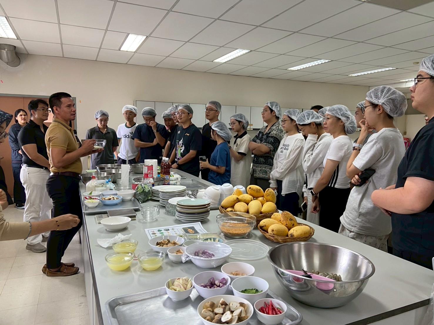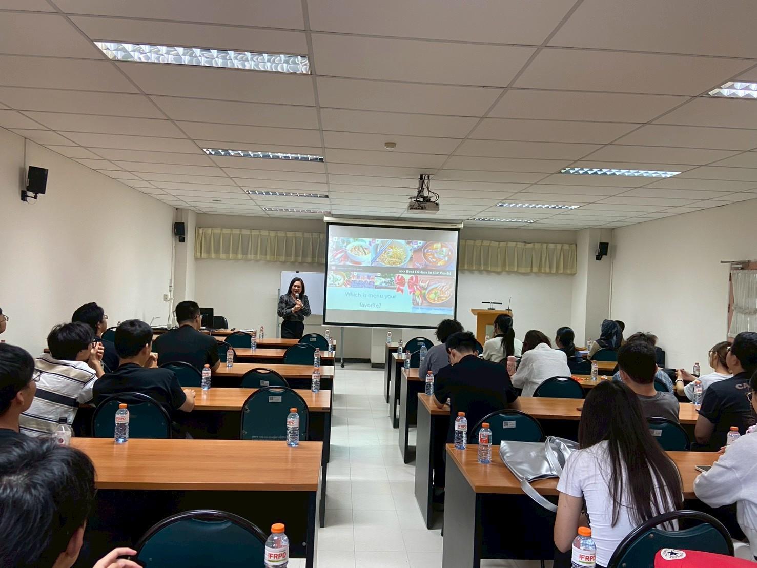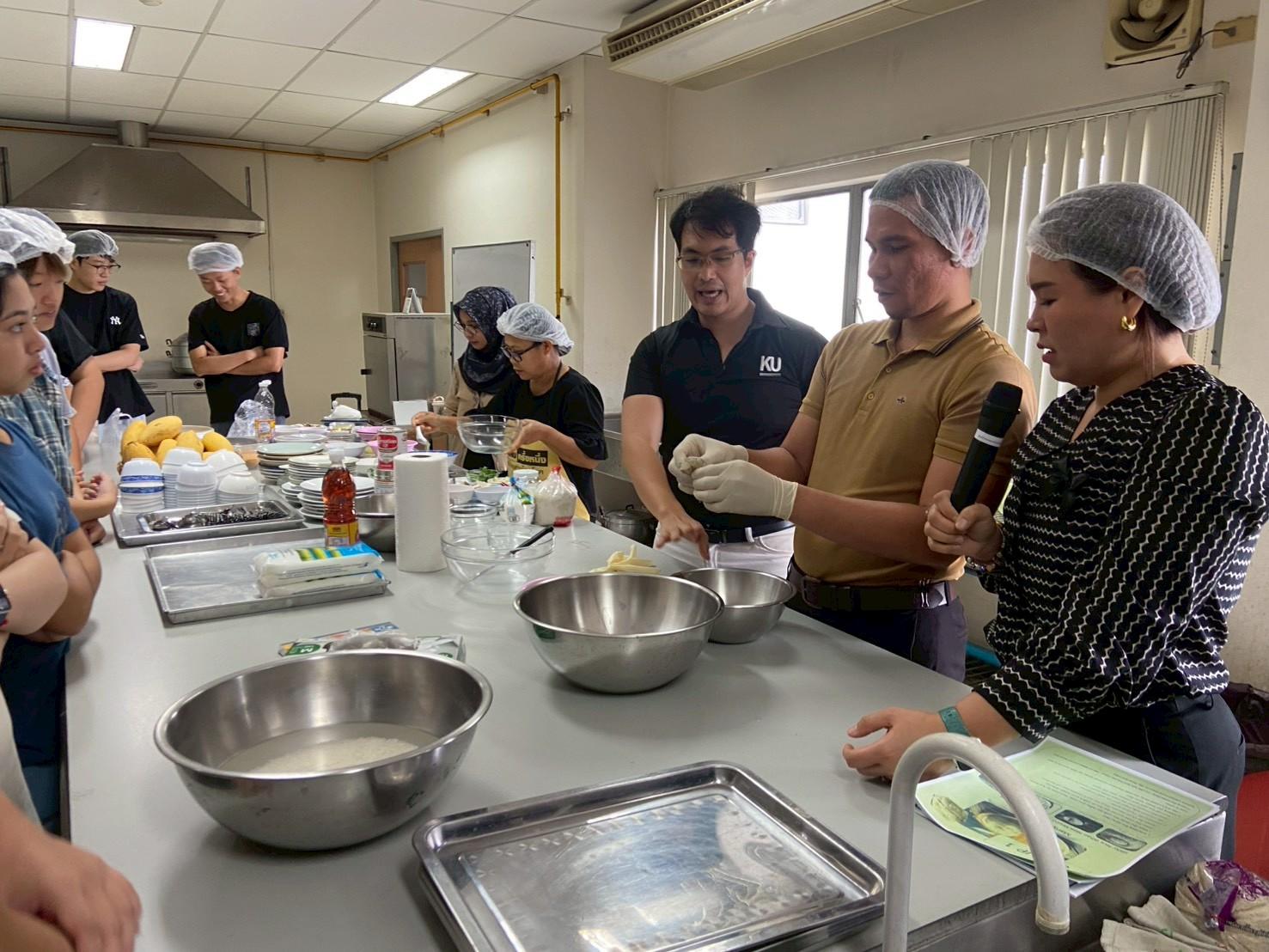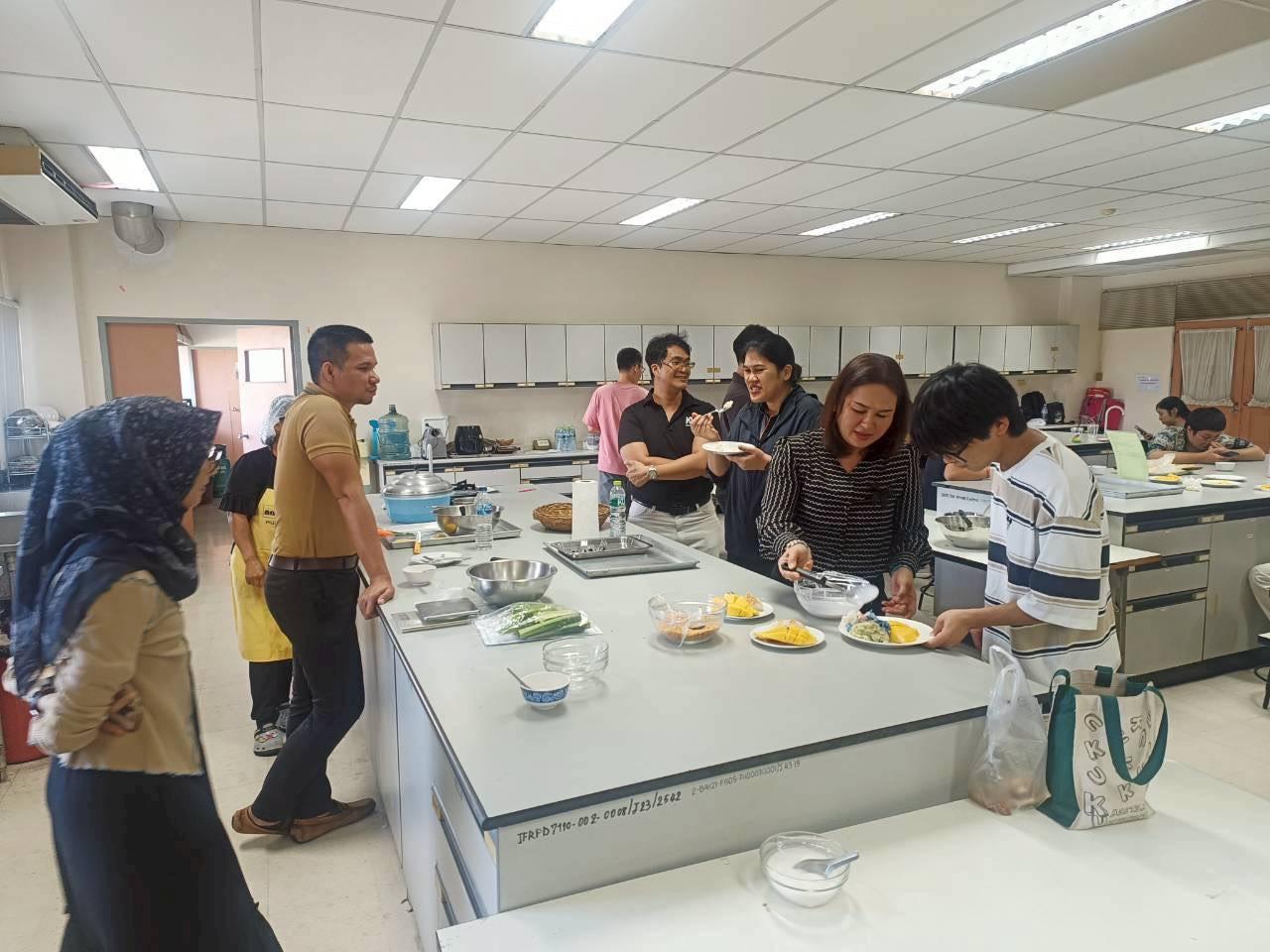 เมื่อวันที่ 19 พฤศจิกายน 2568 สถาบันค้นคว้าและพัฒนาผลิตภัณฑ์อาหาร ร่วมกับวิทยาลัยนานาชาติ มหาวิทยาลัยเกษตรศาสตร์ จัดกิจกรรม ฝึกอบรมเชิงปฏิบัติการเรื่อง “สาธิตและปฏิบัติการการประกอบอาหารไทย (อาหารคาวและอาหารหวาน)” เพื่อเพิ่มพูนความรู้ทางวิชาการและประสบการณ์ทางวัฒนธรรม ให้กับนิสิตชาวไทยและชาวต่างชาติ จำนวน 40 คน โดยมีนักวิจัยสถาบันฯ เป็นวิทยากรบรรยายให้ความรู้ดังนี้