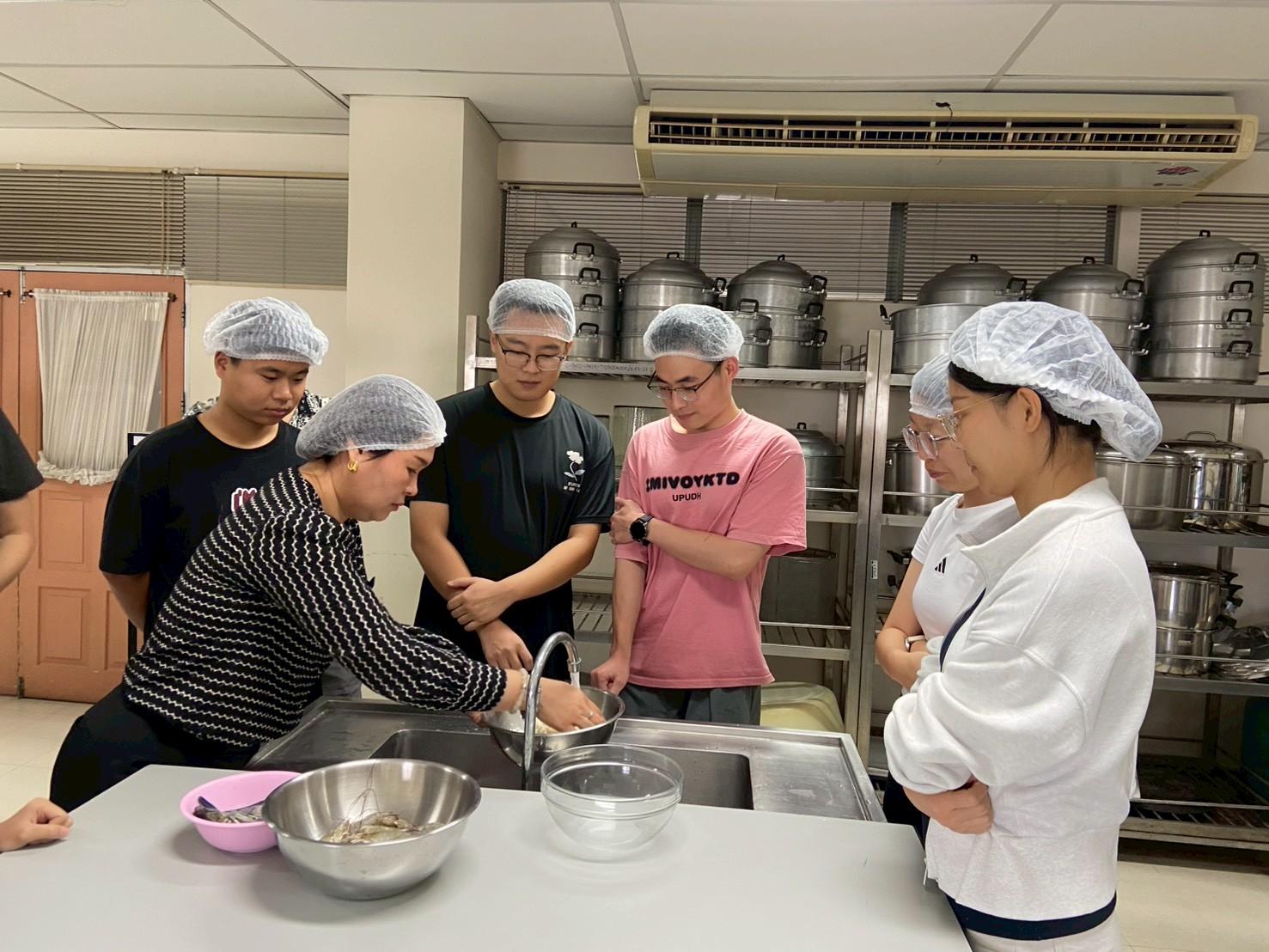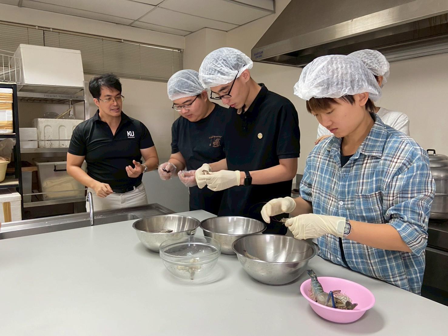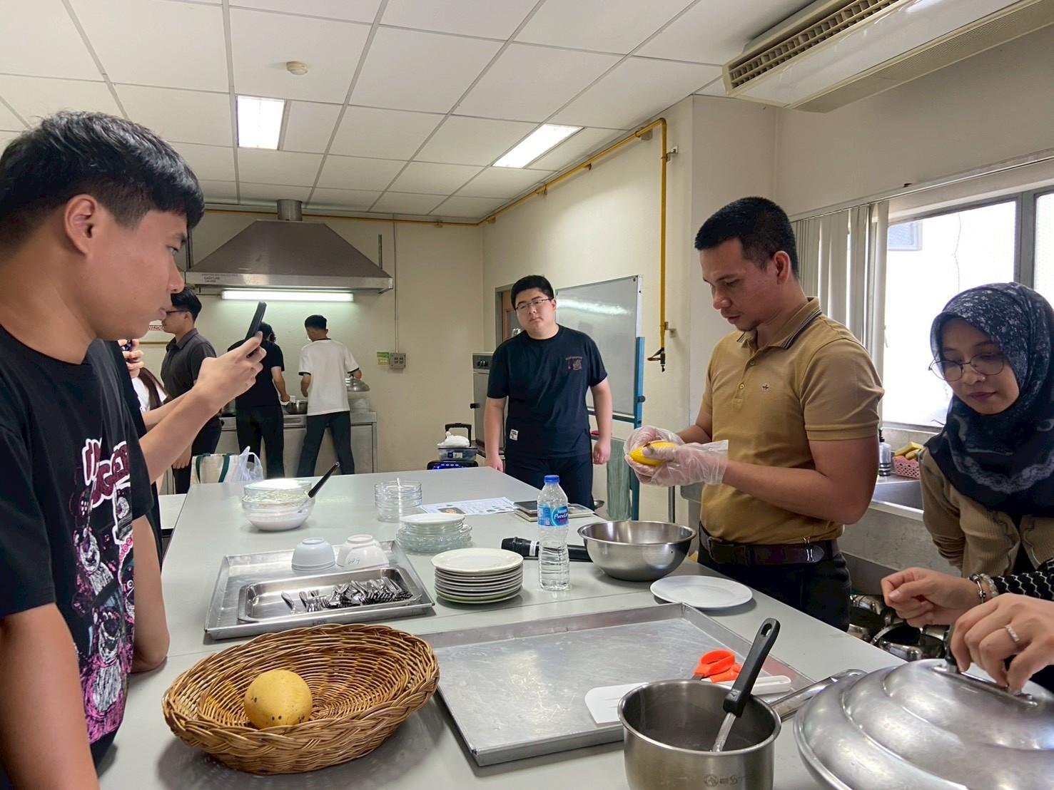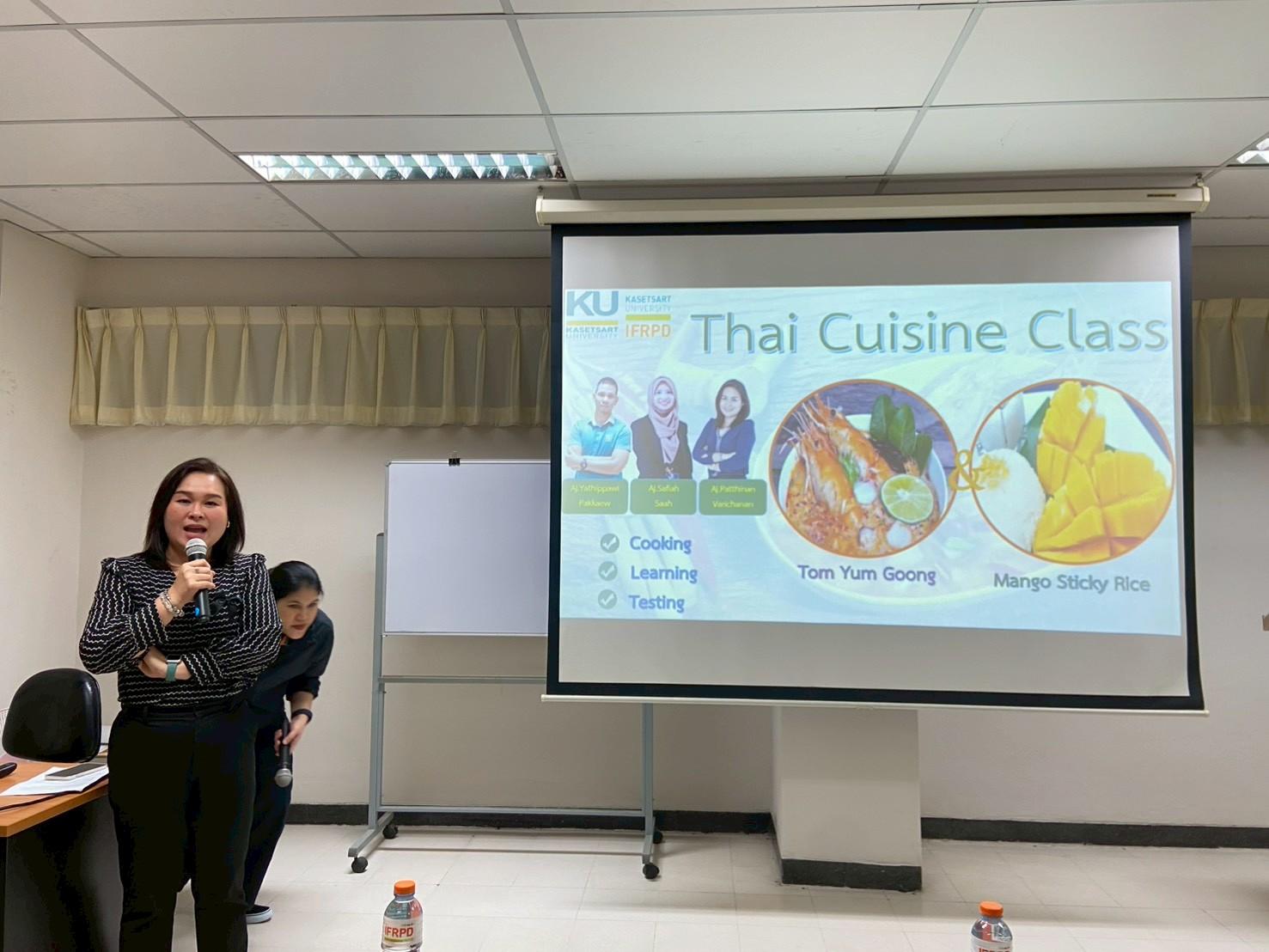 เมื่อวันที่ 19 พฤศจิกายน 2568 สถาบันค้นคว้าและพัฒนาผลิตภัณฑ์อาหาร ร่วมกับวิทยาลัยนานาชาติ มหาวิทยาลัยเกษตรศาสตร์ จัดกิจกรรม ฝึกอบรมเชิงปฏิบัติการเรื่อง “สาธิตและปฏิบัติการการประกอบอาหารไทย (อาหารคาวและอาหารหวาน)” เพื่อเพิ่มพูนความรู้ทางวิชาการและประสบการณ์ทางวัฒนธรรม ให้กับนิสิตชาวไทยและชาวต่างชาติ จำนวน 40 คน โดยมีนักวิจัยสถาบันฯ เป็นวิทยากรบรรยายให้ความรู้ดังนี้